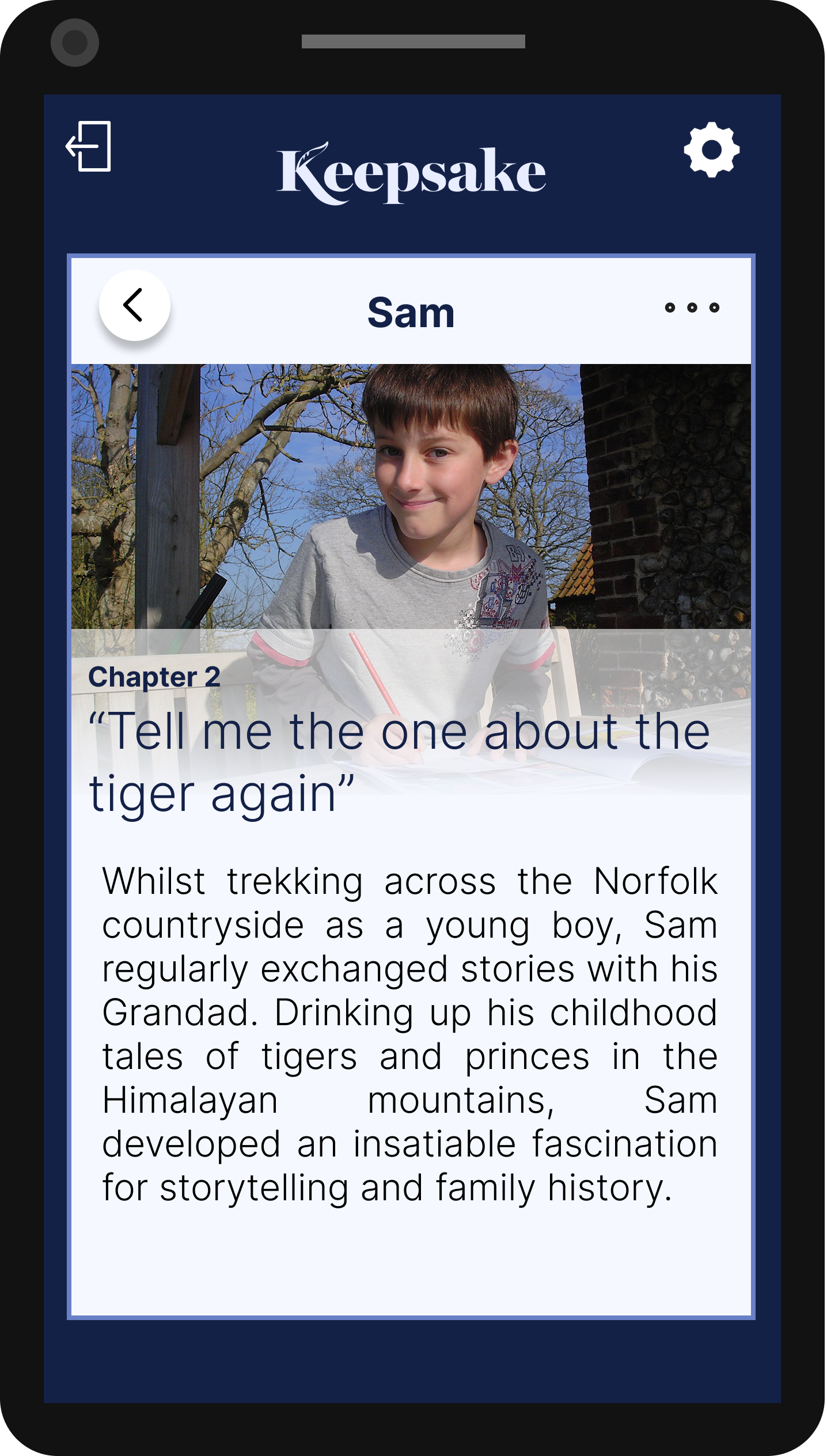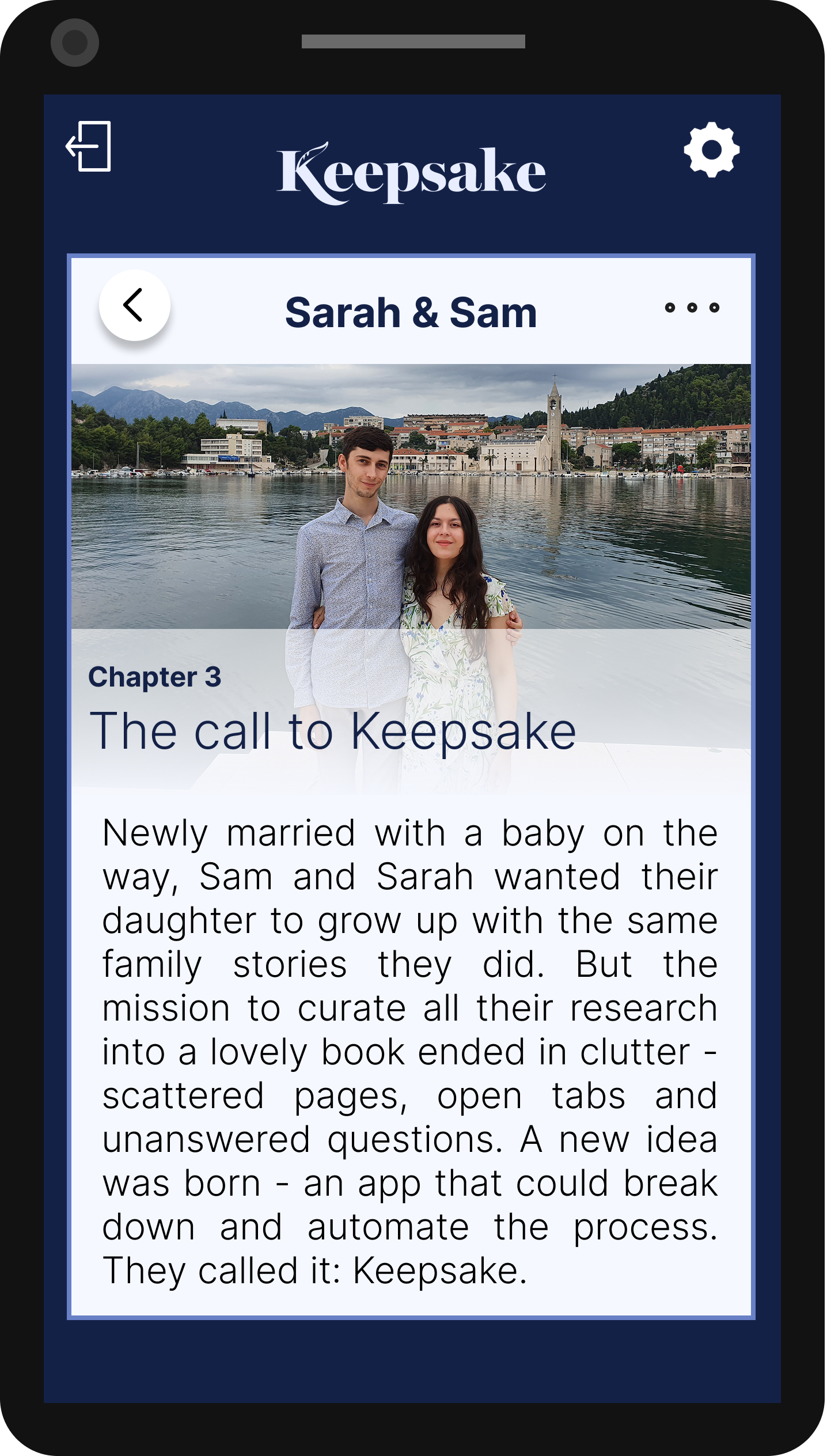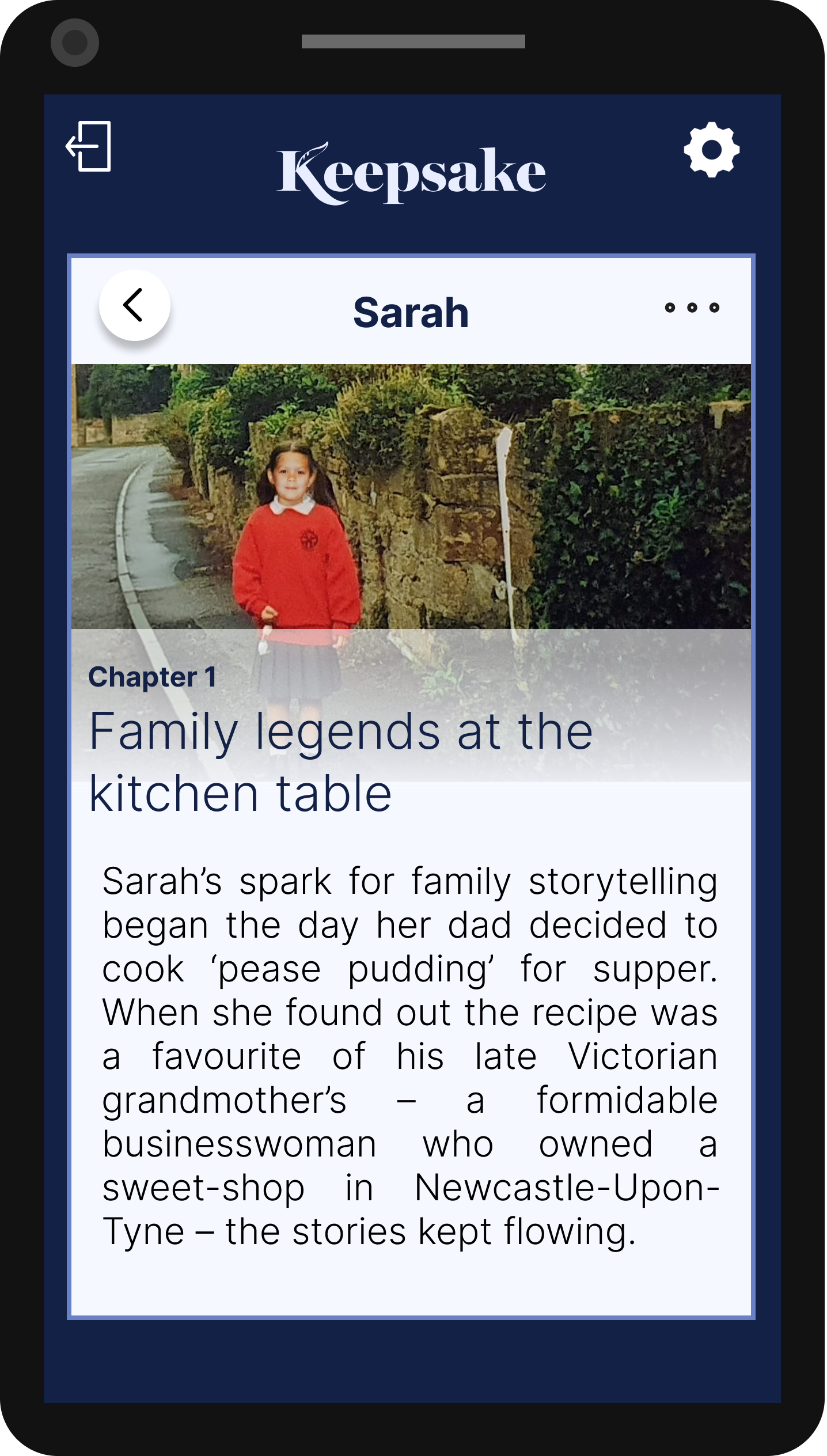 At the end of the journey, your stories become a beautifully printed heirloom book complete with QR links to photos, audio, and video snippets - shipped straight to your door. Want it on the go? You’ll also have the Keepsake app where you can scroll through your relatives’ life stories anywhere, anytime.